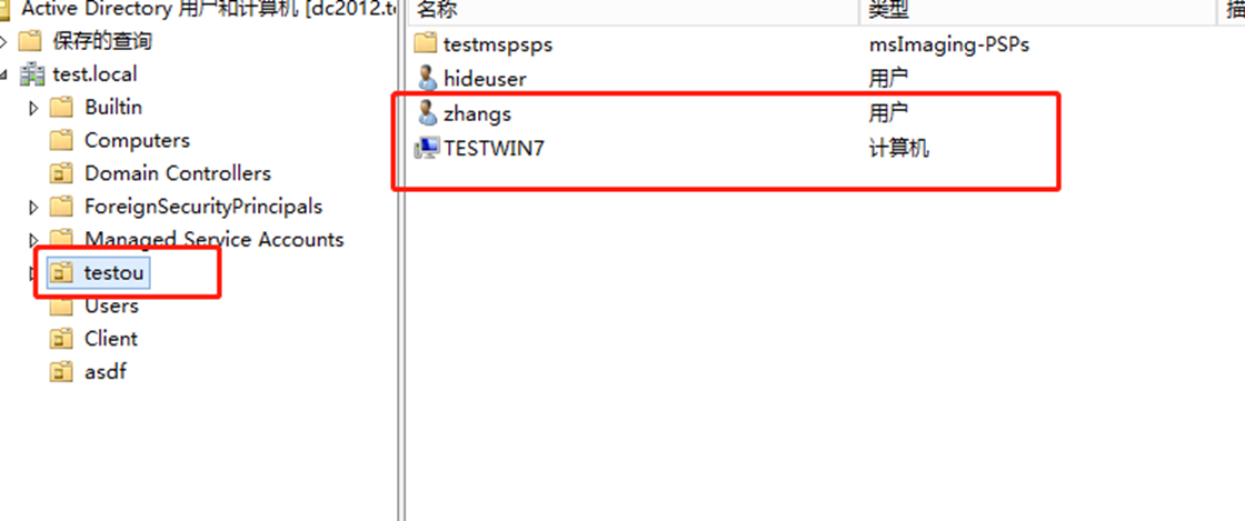 此时的环境:一个配置了LAPS的testwin7主机(属于testou)、一个域中的普通的测试账号zhangs