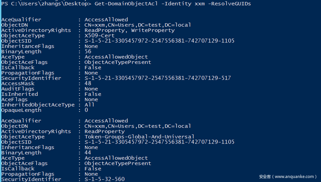 . .\powerview.ps1 Get-DomainObjectAcl -Identity xxm -ResolveGUIDs