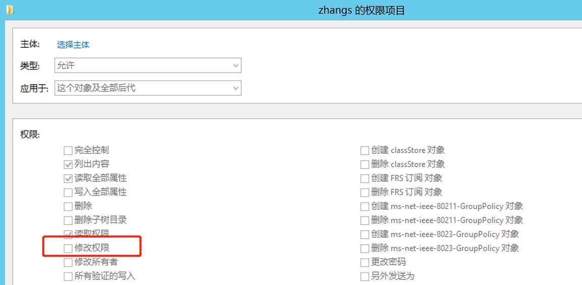 在AdminSDHolder的DACL中设置一条主体为zhangs,权限为完全控制的ACE