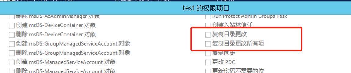 复制目录更改Replicating Directory Changes (DS-Replication-Get-Changes) 复制目录更改所有Replicating Directory Changes All (DS-Replication-Get-Changes-All)(Exchange用的就是这个) 正在复制筛选集中的目录更改Replicating Directory Changes In Filtered Set (rare, only required in some environments)