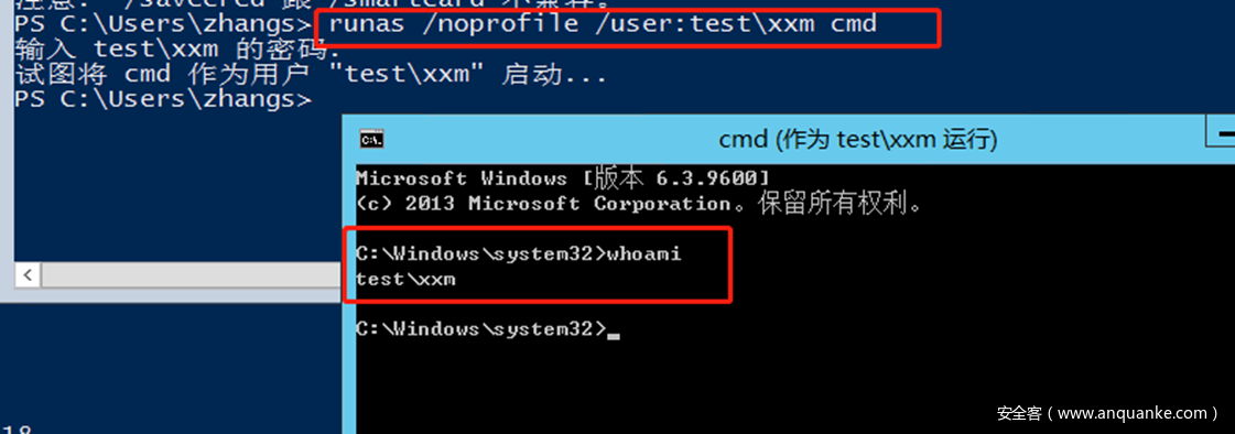 使用zhangs账户和xxm账户做演示: