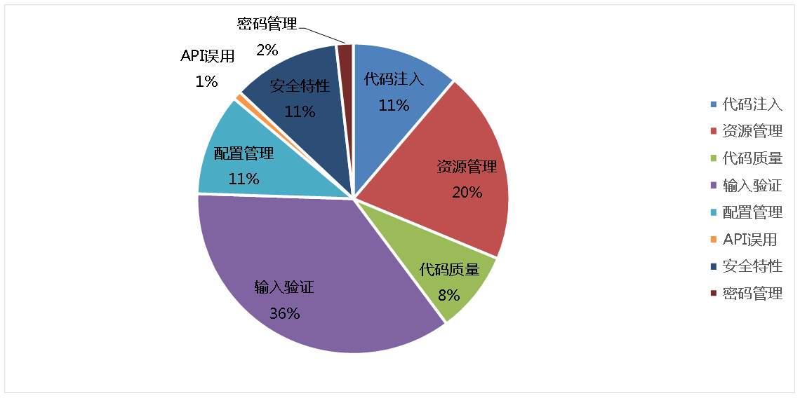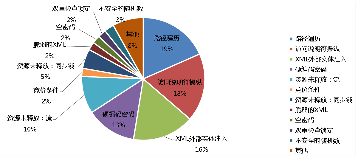 前七类缺陷与源代码中的安全缺陷相关,它们可以成为恶意攻击的目标,一旦被利用会造成信息泄露、权限提升、命令执行等严重后果。最后一类缺陷描述实际代码之外的安全问题,它们容易造成软件的运行异常、数据丢失等严重问题。
