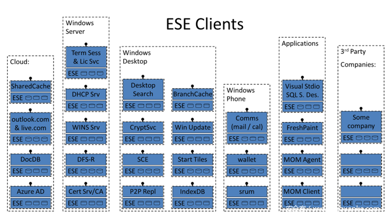 有很多应用都是使用JET APIs 去访问ESE 的数据库。