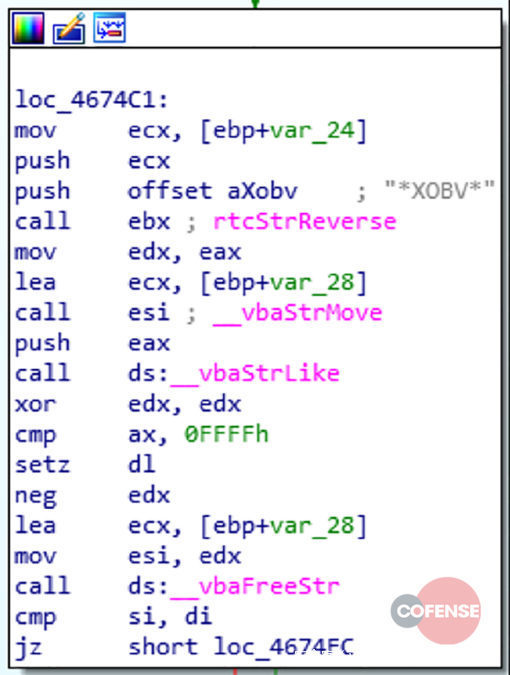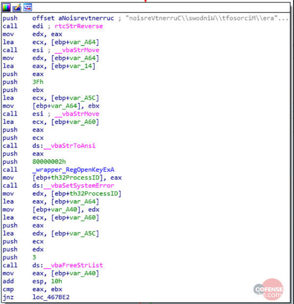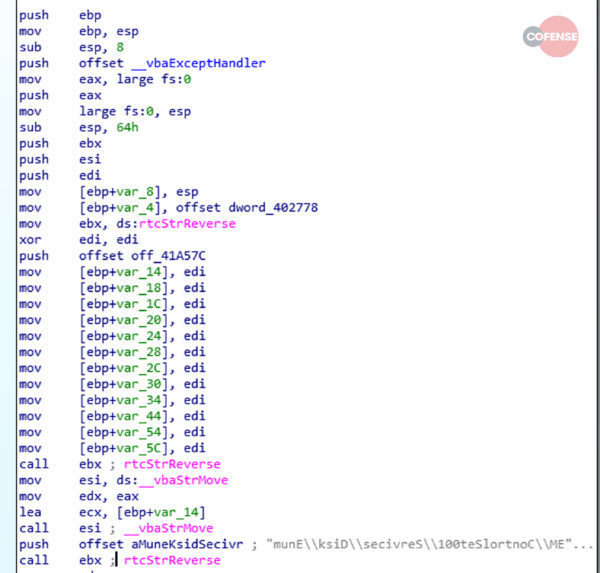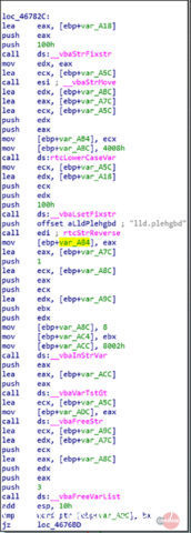 注入这种后门时使用了混淆技术,通过 rtcStrReverse函数可以解码经反转的二进制字符串。如图5,即为一个混淆实例。