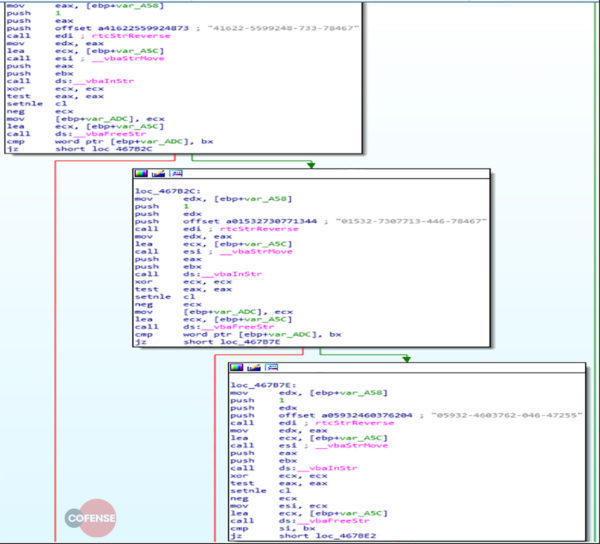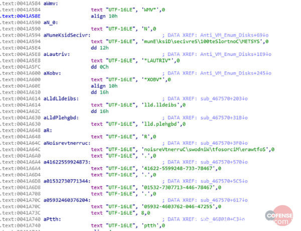 图5:3个使用rtcStrReverse对混淆字符串进行解码的实例
