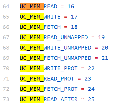- https://github.com/unicorn-engine/unicorn/blob/master/bindings/python/unicorn/unicorn_const.py#L64