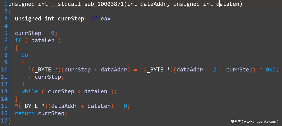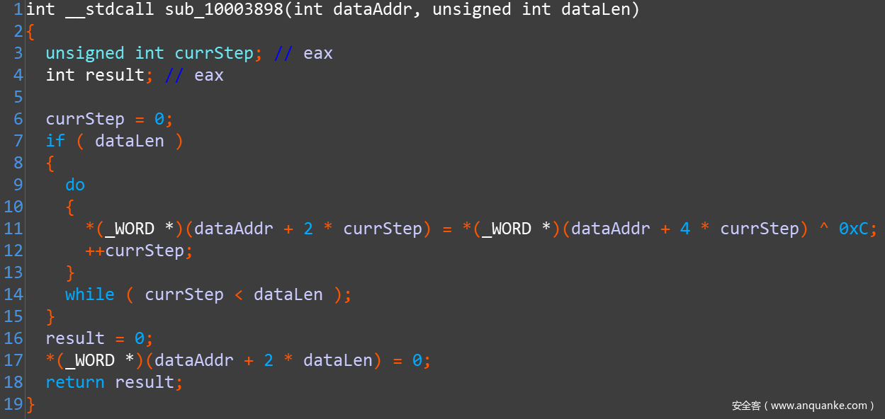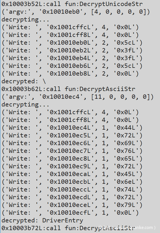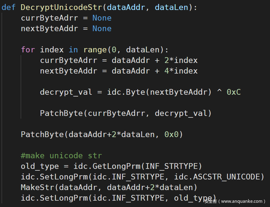 DecryptUnicodeStr 算法其实相同,只是因为字节构成不同,所以是两个解密函数分开写: