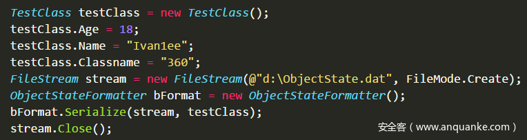 下面通过使用ObjectStateFormatter类序列化一个实例来说明问题,首先定义TestClass对象