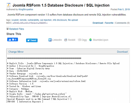 而此前实际上RSForm 1.5版本就存在SQL注入漏洞和数据库开放漏洞了。