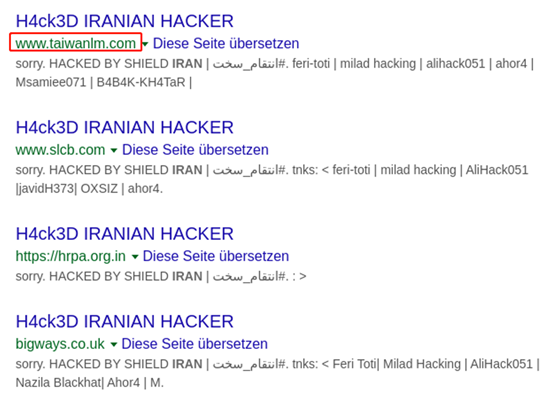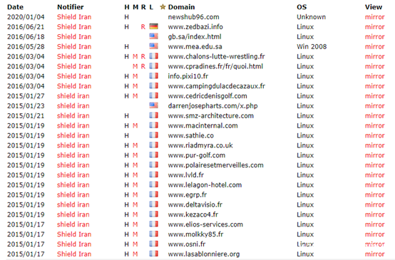 基于该特征,我们发现了大量同一时期被伊朗黑客攻击的网站,但其中没有一个是属于美国网站。