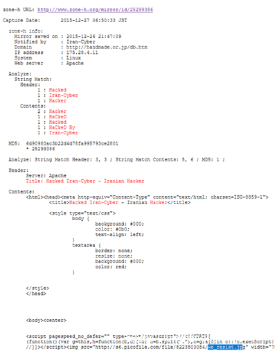 通过对图片信息进行搜查发现,该图曾经出现在另一个被伊朗黑客攻击的网站,攻击者名为Iran-Cyber,因此判断,该黑客团伙也许在2015年就已经开始活跃。