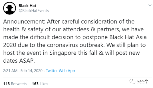 Black Hat Asia主办方在官网公告中宣布会议将延期到秋季举行,并将尽快发布新的活动日期。考虑到Black Hat美国大会通常在每年8月举行,因此,Black Hat Asia延期到秋季将无法避免与Black Hat美国大会发生“冲撞”,实属无奈之举。