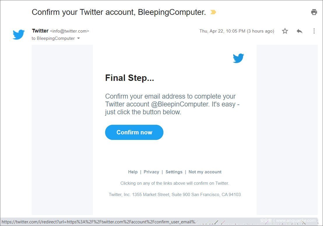 然而最终证明,Twitter发送的确认电子邮件,并非网络钓鱼攻击,且确实出自官方。只不过,这是是Twitter的一次意外操作。点开就看了,没点开,或者直接删除也无所谓。