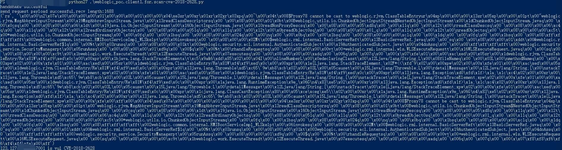 易受攻击的weblogic服务允许未经身份验证的攻击者通过T3网络访问及破坏Oracle WebLogic Server。此漏洞的成功攻击可能导致攻击者接管Oracle WebLogic Server,造成远程代码执行。