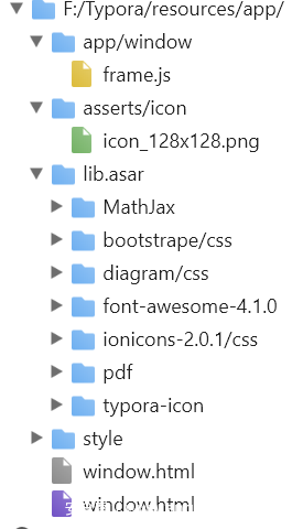 app/window 下面的 frame.js 就是负责Markdown解析、页面渲染等主要功能的代码文件,也是我们重点关注的内容。lib.asar 文件夹下面则是 Typora 依赖的各种第三方库。