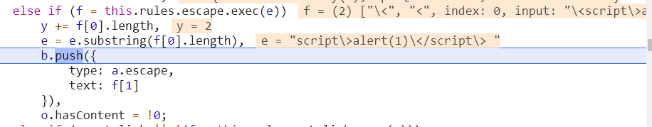我们发现我们的输入满足了this.rules.escape 的匹配规则: