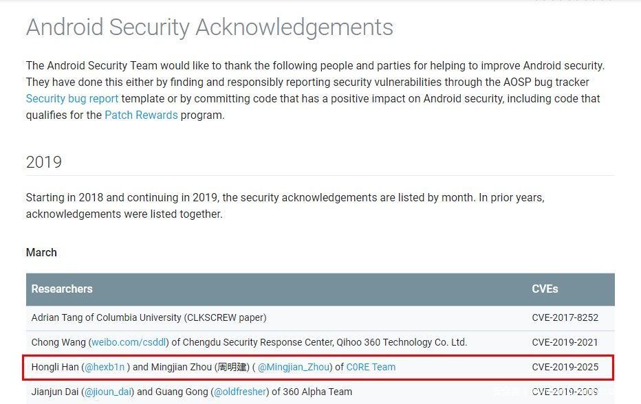 这个漏洞在2019年3月的Android SecurityBulletin中已经公开,对应的漏洞编号为CVE-2019-2025。下文我将会介绍该漏洞危害、影响范围、漏洞原理以及利用思路。