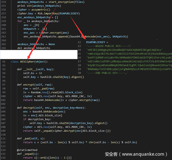 之后开始使用AES加密文件,并使用内置RSA公钥加密AES密钥
