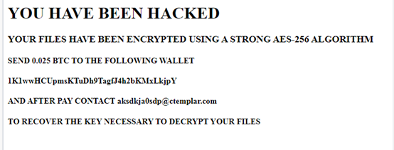 勒索信如下,要求支付0.025比特币,目前无法在不支付赎金的情况下解密。