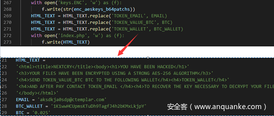 将加密后的AES密钥保存到keys.ENC文件中,最后生成勒索信index.php