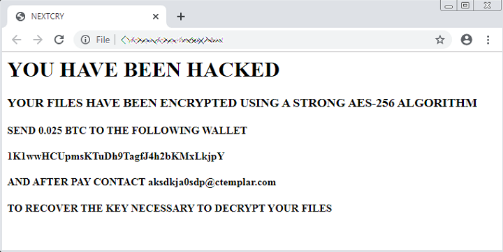 勒索比特币钱包地址:1K1wwHCUpmsKTuDh9TagfJ4h2bKMxLkjpY