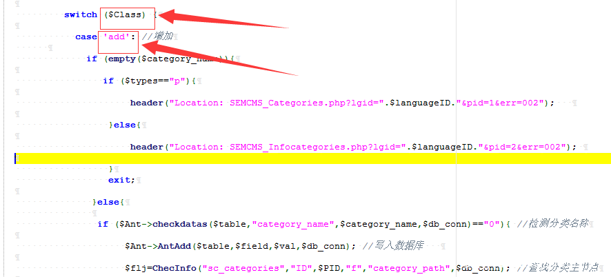 首先需要变量$Class等于add,看看$Class能不能控制呢if (isset($_GET["Class"])){$Class = $_GET["Class"];}else{$Class="";}