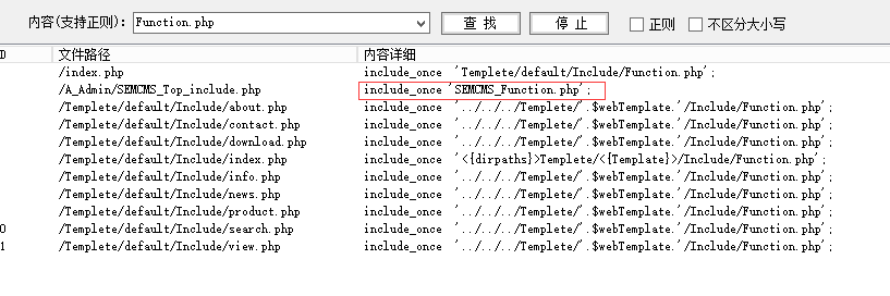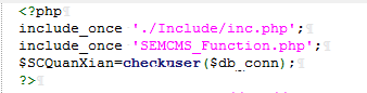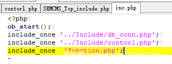 可以看到,这个 A_Admin/SEMCMS_Top_include.php 下还包含了./Include/inc.php,在看看这个./Include/inc.php,下面正好有我需要的 Include/contorl.php ,