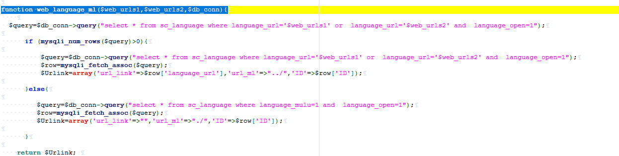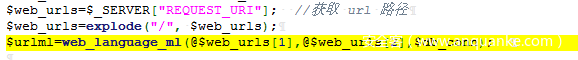 代码的意思是获取url路径,并使用explode函数将字符串打散为数组,将数组的第一个字符串和第二个字符串传给然后web_language_ml函数,看看这个函数做了什么?