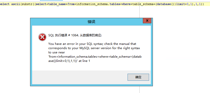 继续执行下一步,尝试获取数据,先直接在数据库中试试要执行的语句,执行成功后再开始构建payload