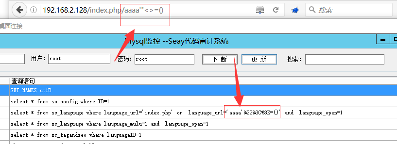 很有点可惜的是双引号,大于号小于号因为GET传参会自动URL编码,在这个地方获取的时候,也只能获取到编码后的数据。在传进数据库时,url编码被当做字符串处理了,很庆幸单引号没有被解析为字符串,可以完成闭合,试试万能的sleep()吧