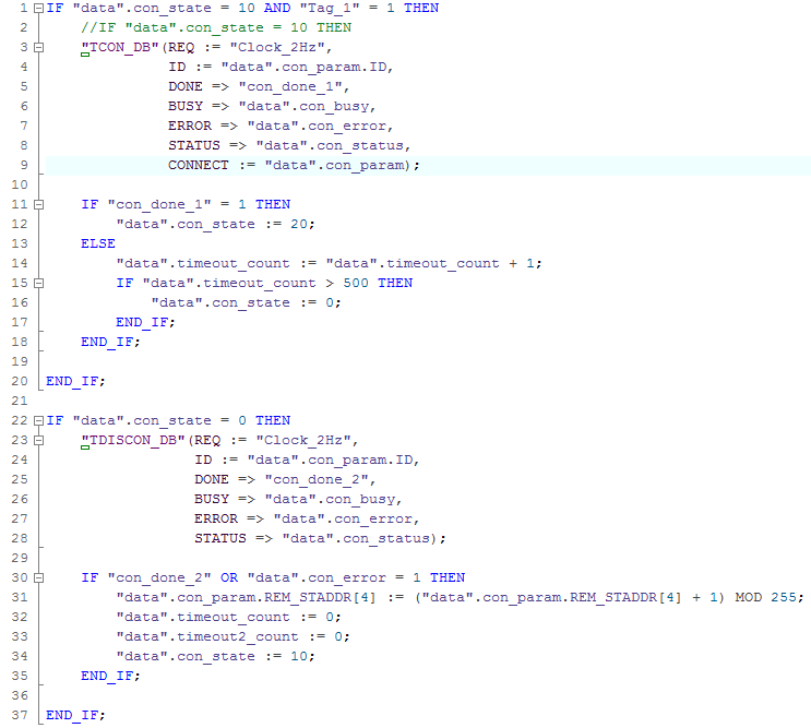 IP扫描及建立TCP连接的程序,采用PLC自带的SCL语言: