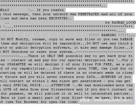 就像我们最近见到的其他恶意软件,RagnarLocker的运营者威胁说如果不支付赎金,就会公开发布他们从受感染主机上获取到的信息。