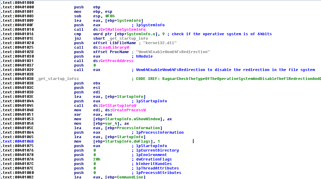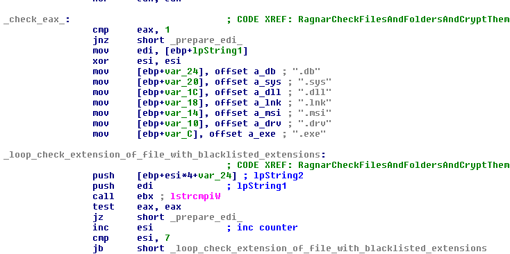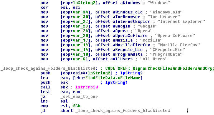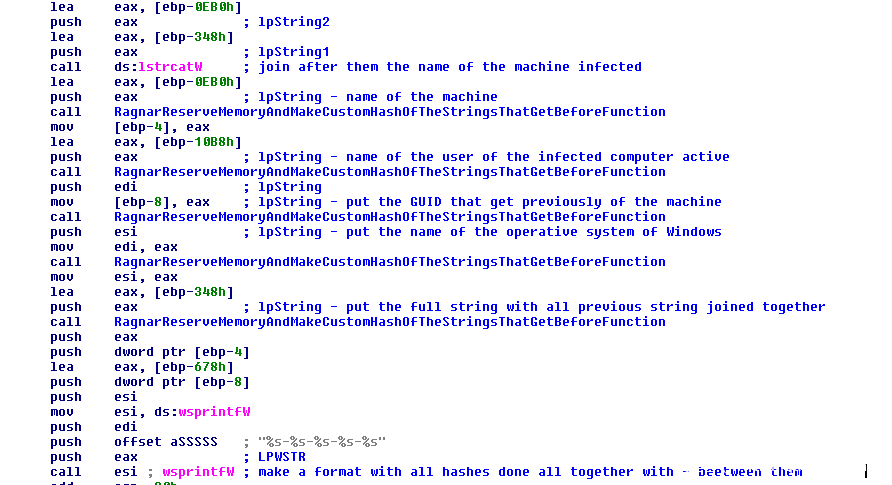 接下来,RagnarLocker将使用函数lstrcpyW准备堆栈中的第一个字符串,然后再使用函数lstrcatW将字符串连接起来。