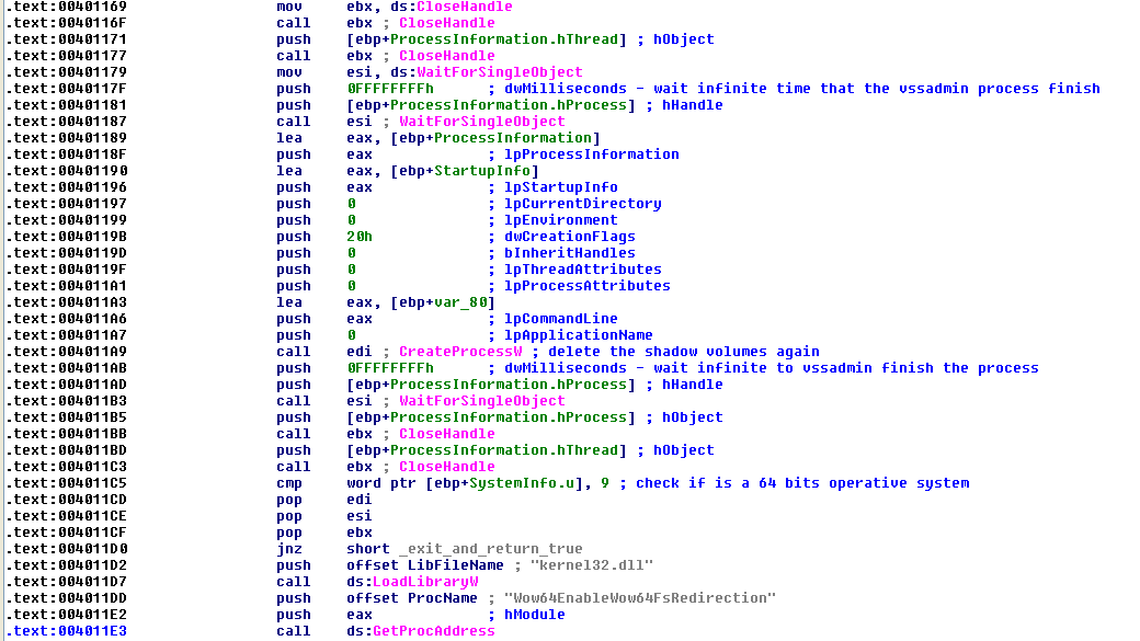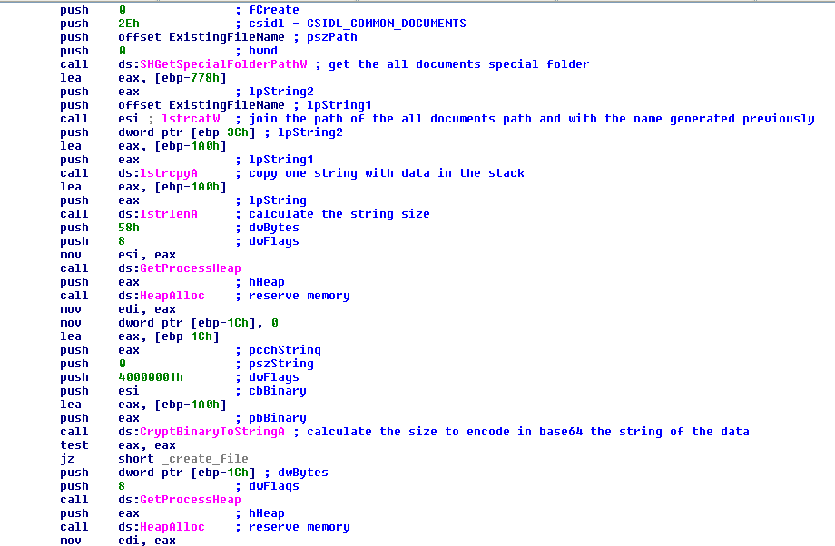 在写入信息前,恶意软件将使用LockFile函数,并在写入函数进程执行完成后使用UnlockFile函数释放已经加密的文件。这样做是为了防止在加密过程中文件被更改或删除。