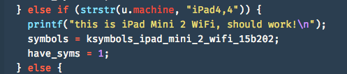 我所做的iPad Mini 2 WiFi补丁可以在这里找到。