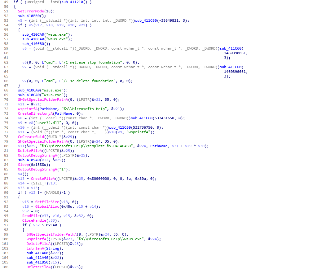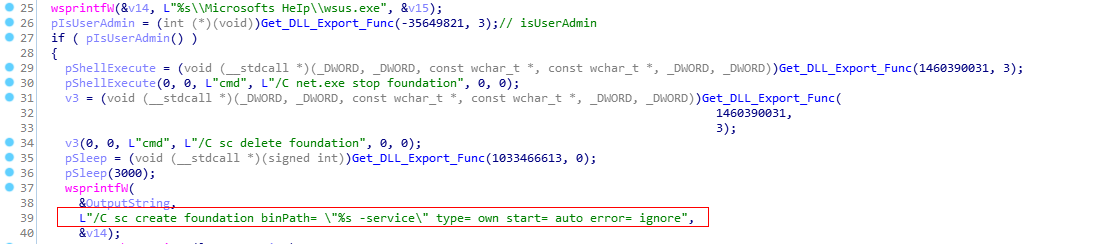 初步看,这个样本会检查系统是否运行foundation这个服务,如果有该服务运行,停止服务并删除。