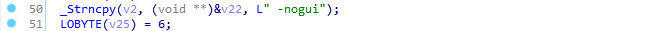 上面的代码表明,wsus.exe的代码中,有一个SCM,会创建线程执行线程,线程的一部分行为是:用 –nogui参数执行自身。