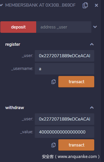 所以我们这里直接去调用 合约创建者的address 加上我们存入的0.4eth即可。