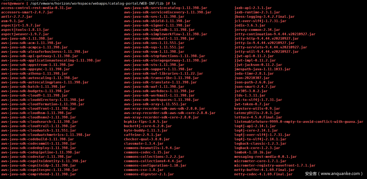 本次漏洞分析源码所在位置:/opt/vmware/horizon/workspace/webapps/catalog-portal/WEB-INF/lib。