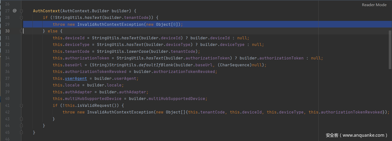 生成 AuthContext对象的地方在AuthContextPopulationInterceptor 拦截器中,而且各项参数均是从请求中获取,这里可构造注入点。