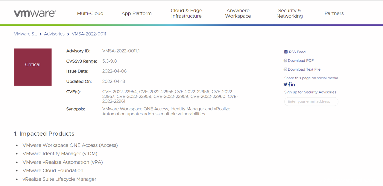 1.https://www.vmware.com/security/advisories/VMSA-2022-0011.html