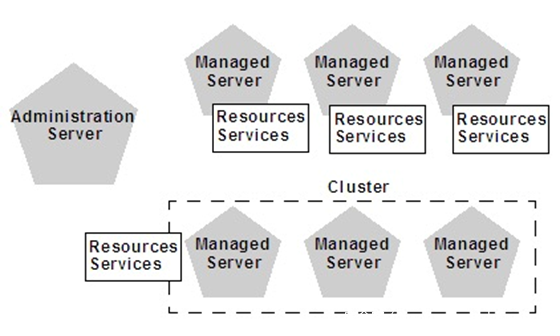 Oracle WebLogic Server域又是WebLogic的核心。Oracle WebLogic Server域是一组逻辑上相关的Oracle WebLogic Server资源组。 域包括一个名为Administration Server的特殊Oracle WebLogic Server实例,它是配置和管理域中所有资源的中心点。 也就是说无论是Web应用程序、EJB(Enterprise JavaBeans)、Web服务和其他资源的部署和管理都通过Administration Server完成。