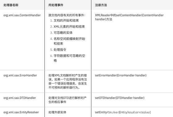 SAX是简单XML访问接口,是一套XML解析规范,使用事件驱动的设计模式,那么事件驱动的设计模式自然就会有事件源和事件处理器以及相关的注册方法将事件源和事件处理器连接起来。