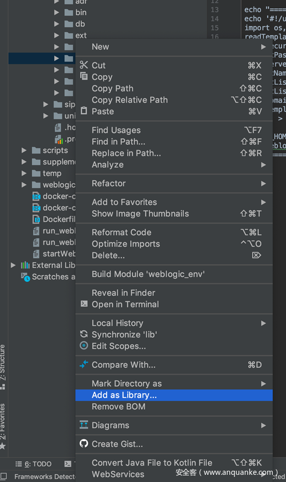 也可以使用run_weblogic1036jdk6u25.sh、run_weblogic12013jdk7u21sh、run_weblogic12021jdk8u121.sh这三个脚本进行快速环境搭建并复制远程调试需要用到的目录。执行前请赋予它们相应的可执行权限。