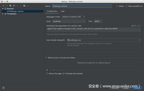 若要远程调试WebLogic,需要修改当前WebLogic Server域目录下bin/setDomainEnv.sh文件,添加如下配置: