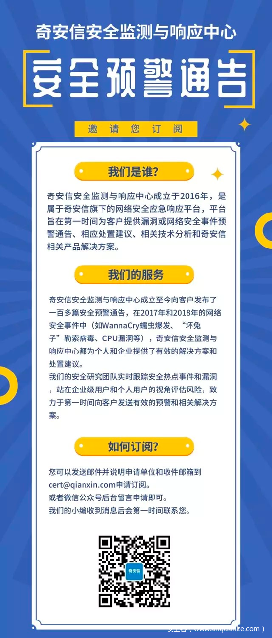 奇安信 A-TEAM 是隶属于奇安信集团旗下的纯技术研究团队。团队主要致力于 Web 渗透,APT 攻防、对抗,前瞻性攻防工具预研。从底层原理、协议层面进行严肃、有深度的技术研究,深入还原攻与防的技术本质。