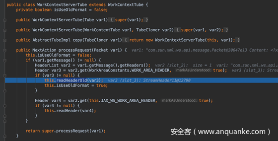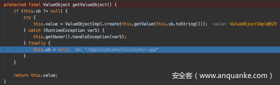简要的分析一下这个漏洞,远程调试时断点应下在wlserver/server/lib/wlthint3client.jar/weblogic/InboundMsgAbbrev的readObject()中。 可以看到此处即对我生成的恶意对象进行了反序列化,此处为第一次反序列化,不是命令的执行点。后续的执行过程和经典的apache-commons-collections反序列化漏洞执行过程一致,需要继续了解可参考@gyyyy的文章:《浅析Java序列化和反序列化——经典的apache-commons-collections》