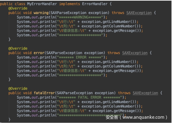 然后实现ErrorHandler, ErrorHandler是负责处理一些解析时可能产生的错误